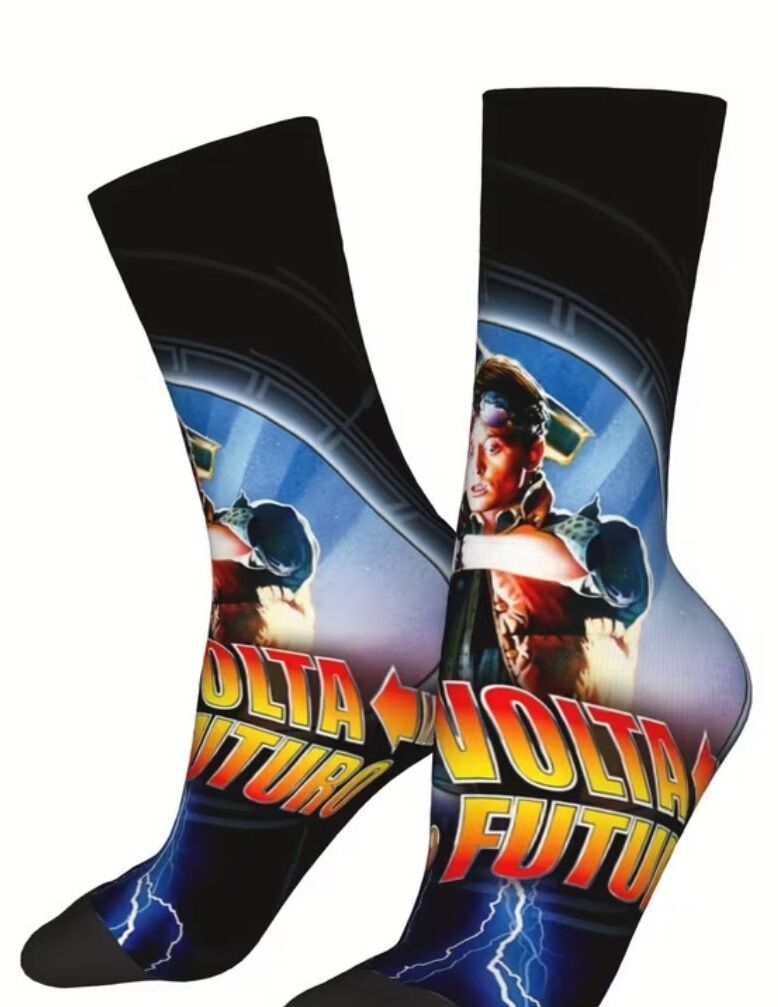 Featuring elements tied to the legendary time-travelling story—often associated with characters like Marty McFly and the unforgettable DeLorean—these socks deliver a fun and nostalgic look that stands out without being over the top.