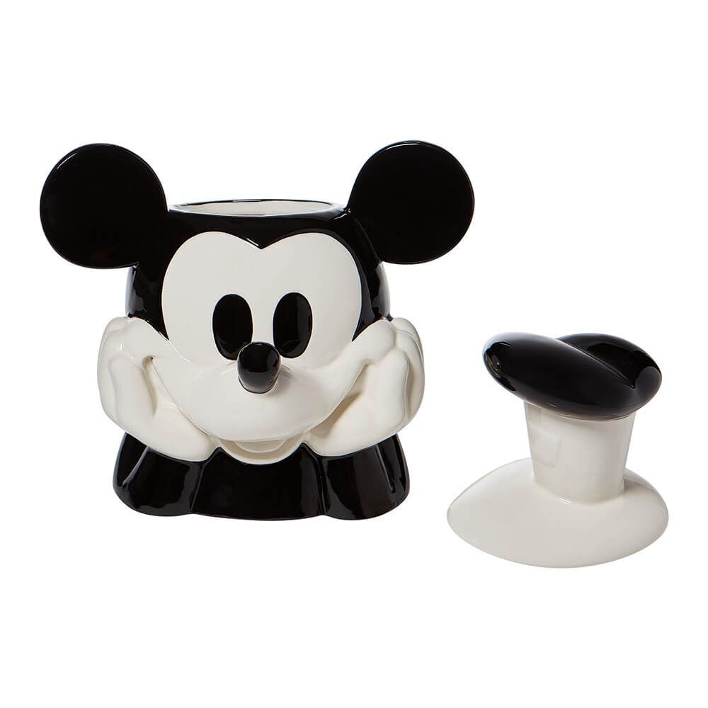 In his first moment in animation, Mickey Mouse enters the Disney landscape as Steamboat Willie. Donning his vintage conductor cap and black & white hue, the mouse wears a smile as he harbors your cookie pile. This jar will steer your sweets to freshness. This retro Steamboat Willie cookie jar has a removable head as the lid and is a must have piece for collectors and Disney fans. Crafted from high quality stoneware and hand painted