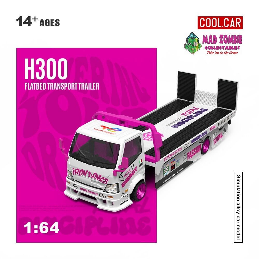 Cool Car 1/64 - H300 Flatbed Transport Trailer - Iron Dames White/Pink (Limited to 999pcs World Wide) - PRE-ORDER