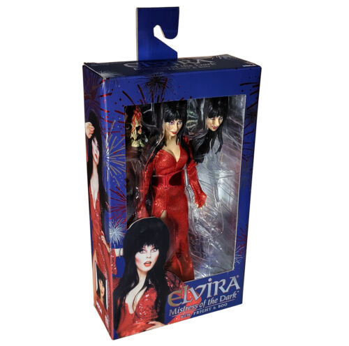 In StockThe devilishly delightful Cassandra Peterson has played the part of Elvira for more than 40 years with grace, humor and more than a little camp. NECA is proud to present this positively patriotic figure of the Mistress of the Dark in a sparkling red dress for your horror collection. The 8" Elvira action figure is fully articulated and features tailored fabric clothing, plus plenty of accessories... alternate winking head, skull and snake candle holder, chalice, and figure stand.