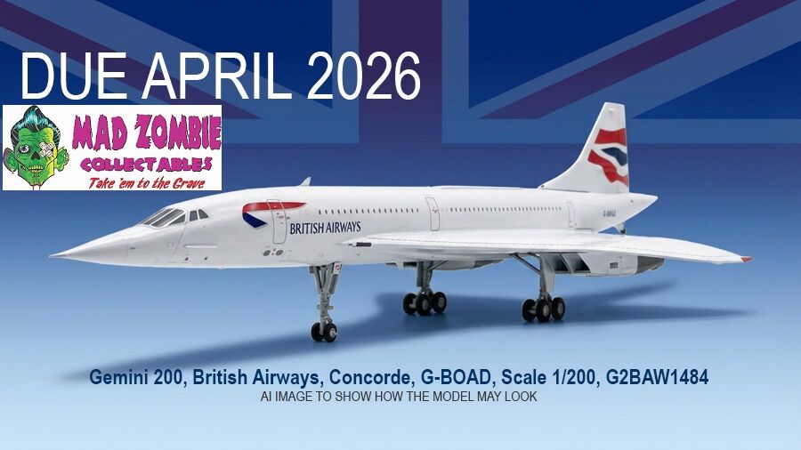 Pre-order - Released 25 July 2026A superb supersonic aviation collectable, this Gemini 200 British Airways Concorde features registration G-BOAD in scale 1:200.