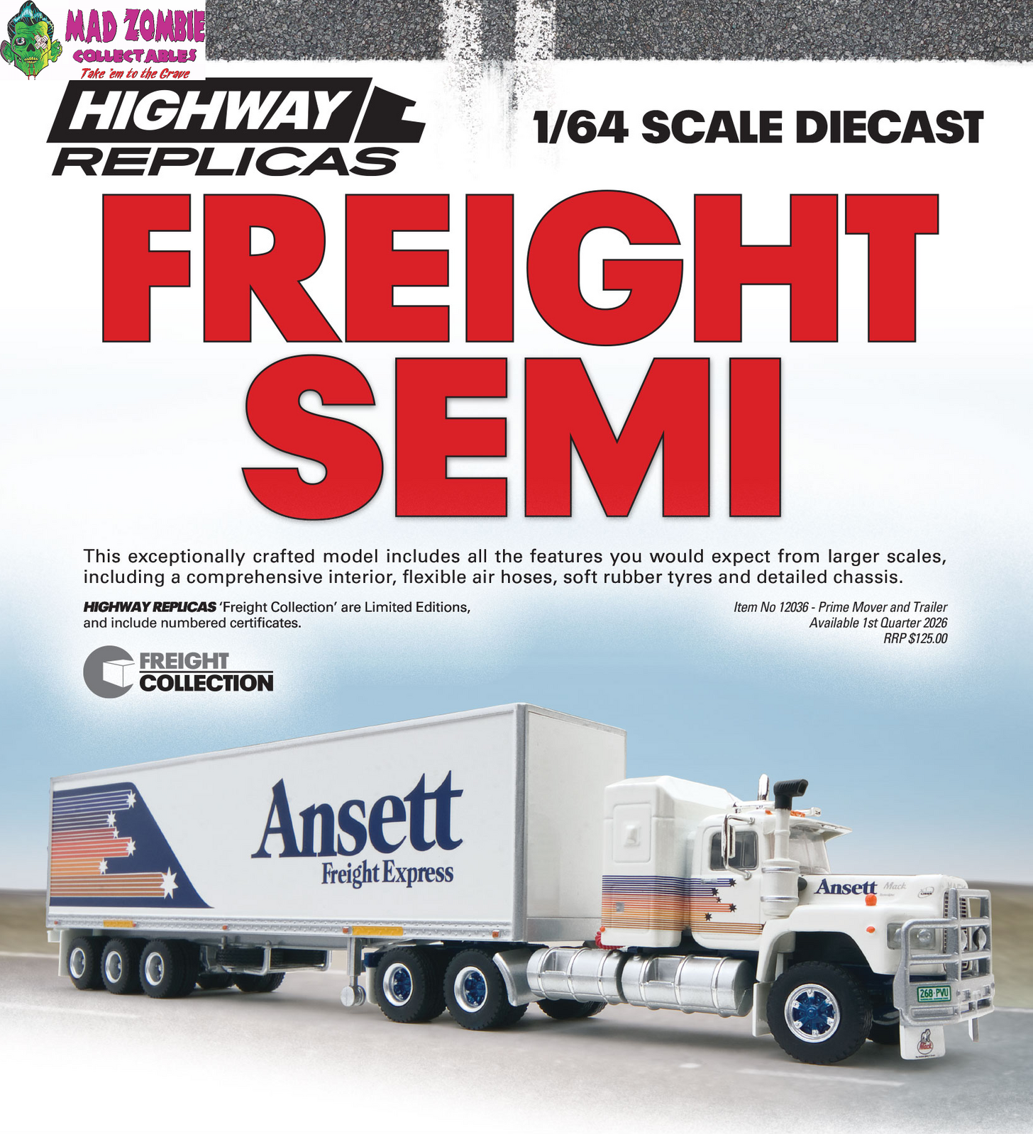 Highway Replicas 1/64 Scale - 12036 Freight Semi - Ansett Freight Express - (PRE-ORDER)