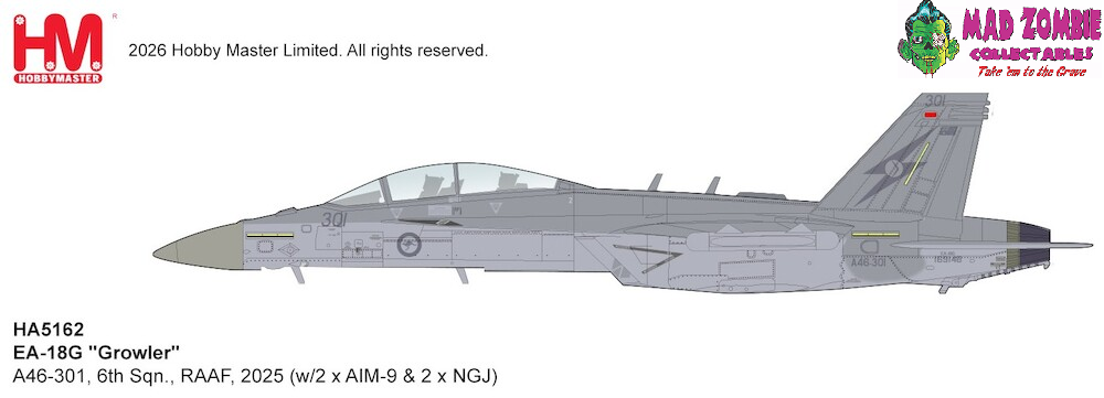 Hobby Master - 1/72 EA-18G Growler A46-301, 6th Sqn., RAAF, 2025 (w/2 x AIM-9 & 2 x NGJ) - (PRE-ORDER)