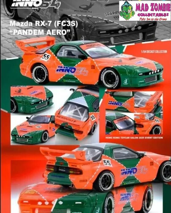 The Inno64 Mazda RX-7 FC3S Pandem Aero Hong Kong Toy Car Salon 2025 Exclusive is a high-demand JDM diecast that blends classic rotary performance heritage with aggressive modern widebody styling. Built on the iconic FC3S platform, this release features the unmistakable Pandem aero kit—transforming the RX-7 into a track-inspired street weapon that stands out in any serious collection.