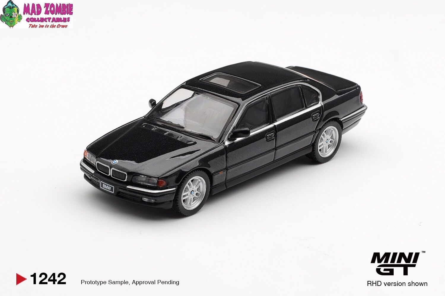 The MINI GT BMW 750iL Black Sapphire 1/64 is a premium BMW 7 Series E38 diecast that captures the timeless luxury and presence of one of BMW’s most iconic flagship sedans. Finished in deep Black Sapphire, this MINI GT BMW 750iL diecast delivers clean executive styling, precise proportions, and strong appeal for collectors of classic European cars.