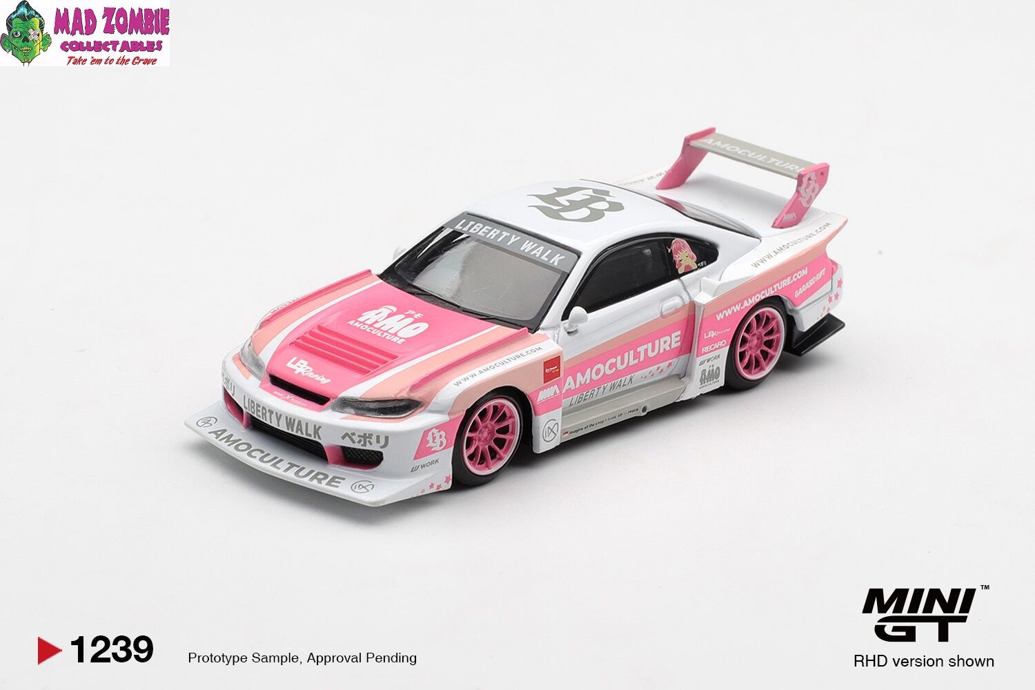 The MINI GT Nissan Silvia S15 LB-Super Silhouette AMOCULTURE sits in a high-demand segment: