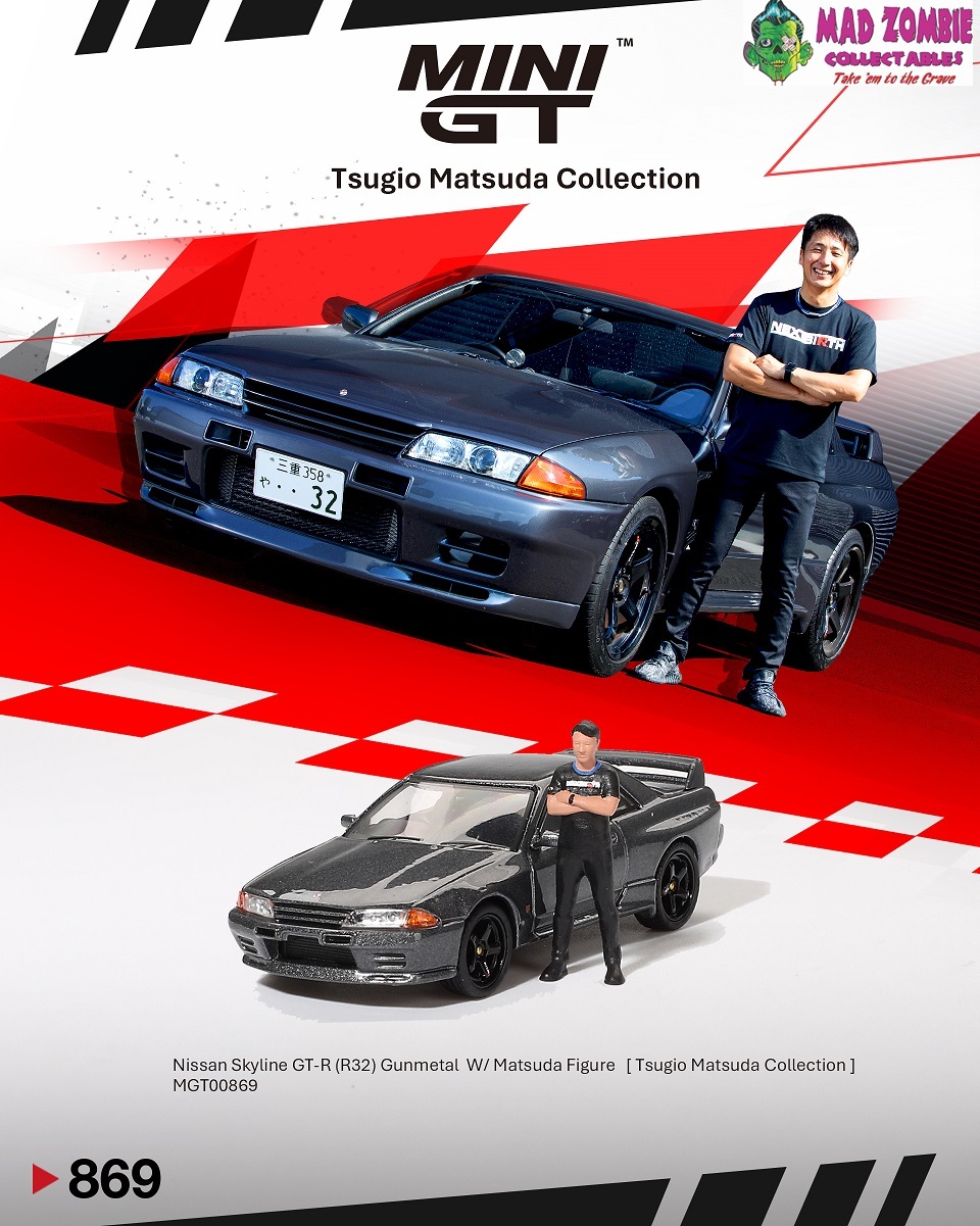 Mini GT 1/64 - Nissan Skyline GT-R (R32) Nismo Gunmetal W/ Matsuda Figure Tsugio Matsuda Collection - PRE-ORDER