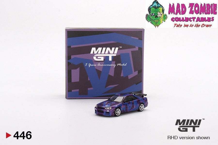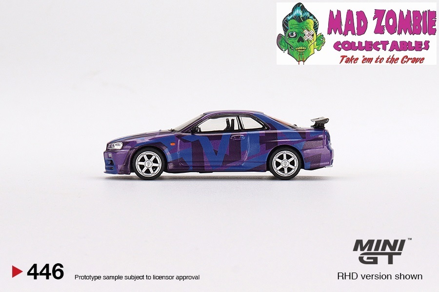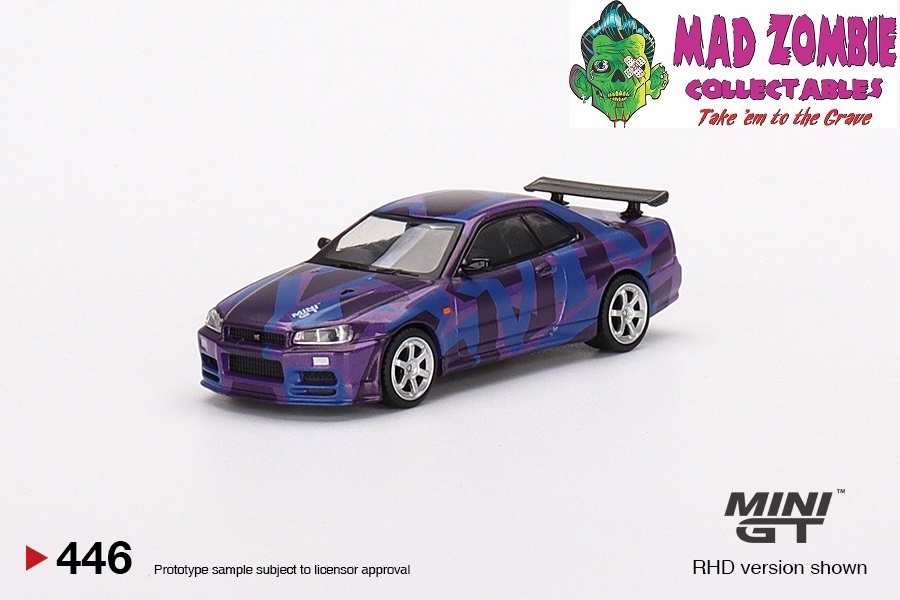 Mini GT 1/64 - Nissan Skyline GT-R (R34) V-Spec II MINI GT Digital Camouflage Purple Limited Edition 9999 pcs