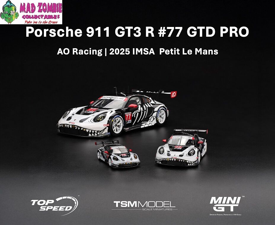 MINI GT 1/64 - Porsche 911 GT3 R #77 AO Racing 2025 IMSA Petit Le Mans - PRE-ORDER