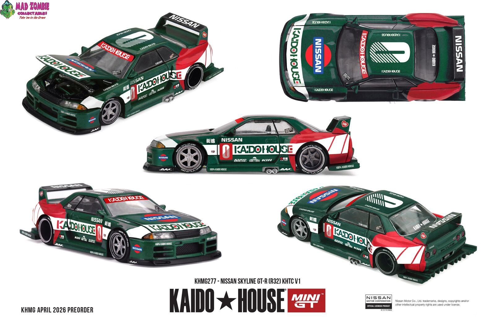 Pre-order - Released 26 December 2026Mini GT Kaido House Nissan Skyline GT-R (R32) “KHTC V1” – 1/64 Scale Diecast Model