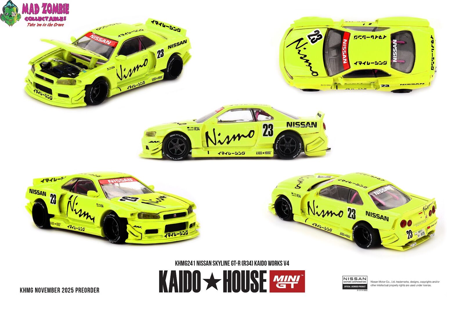MINI GT x KAIDO HOUSE 1/64 - Nissan Skyline GT-R (R34) Kaido Works V4 - PRE-ORDER