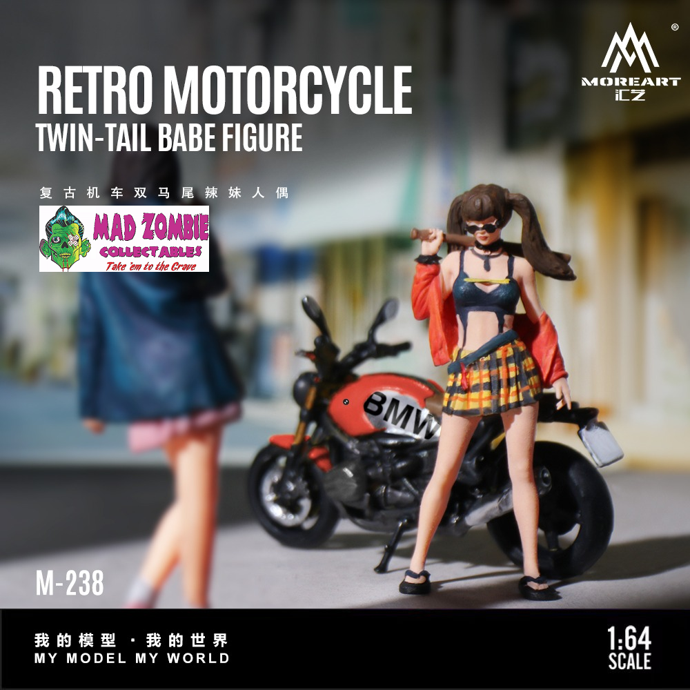 Pre-order - Released 26 September 2026MoreArt 1/64 Scale – Retro Motorcycle Girl with Ponytails Figurine Set (Resin Model)