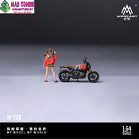 Add personality and storytelling to your display with the MoreArt 1/64 Scale Retro Motorcycle Girl with Ponytails Figurine Set, a finely crafted resin model designed to bring your diorama scenes to life.