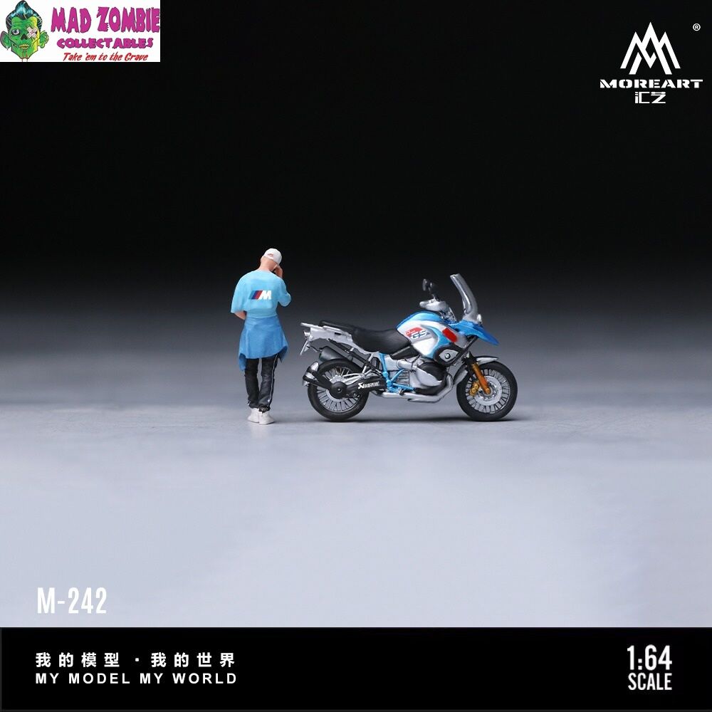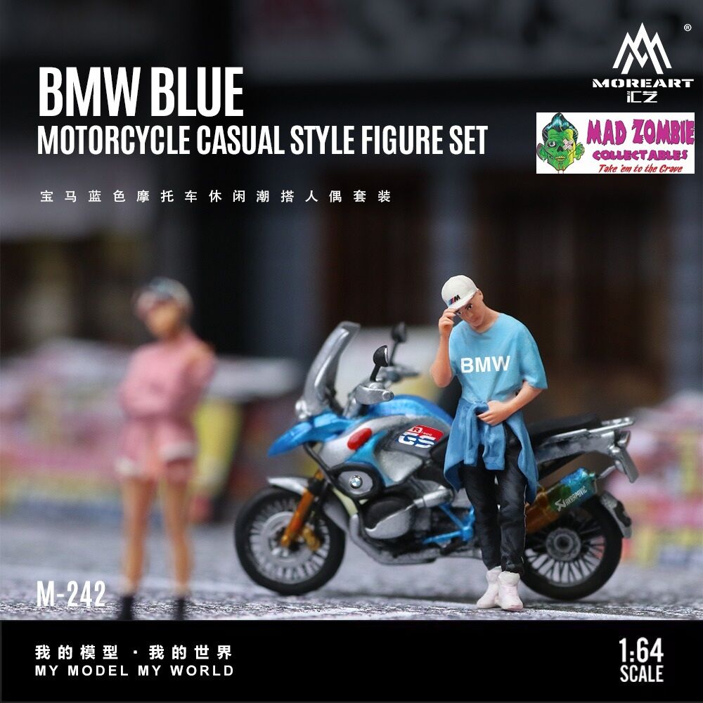 MoreArt 1/64 Scale - BMW Blue Motorcycle Casual Trendy Guy Figure Set (Resin Model) - (PRE-ORDER)