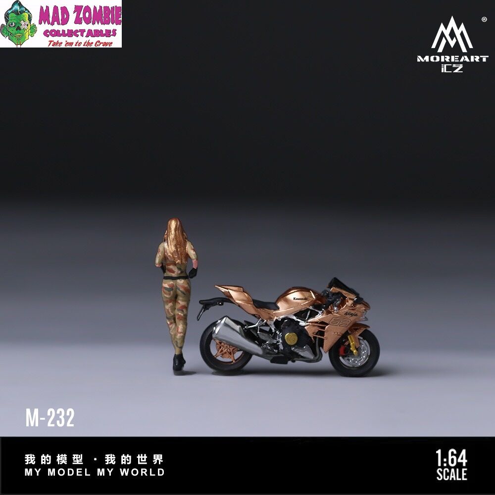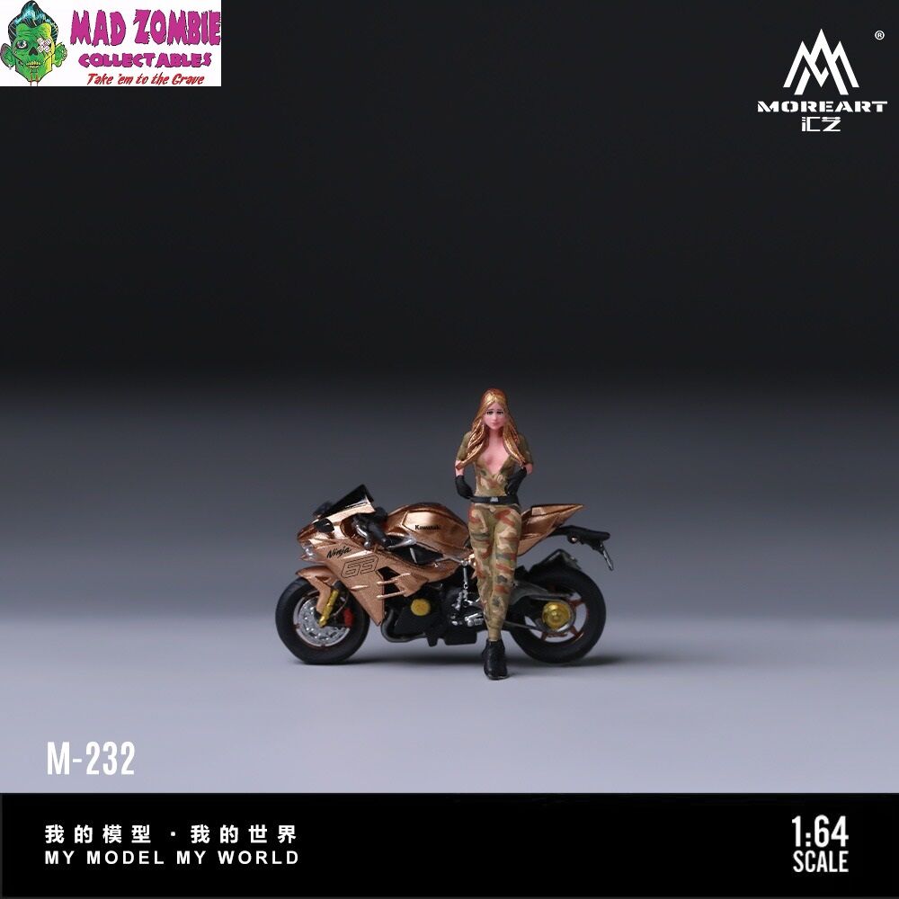 MoreArt 1/64 Scale - Kawasaki Golden 63 Camouflage Uniform Blonde Girl Motorcycle Figure (Resin Model) - (PRE-ORDER)