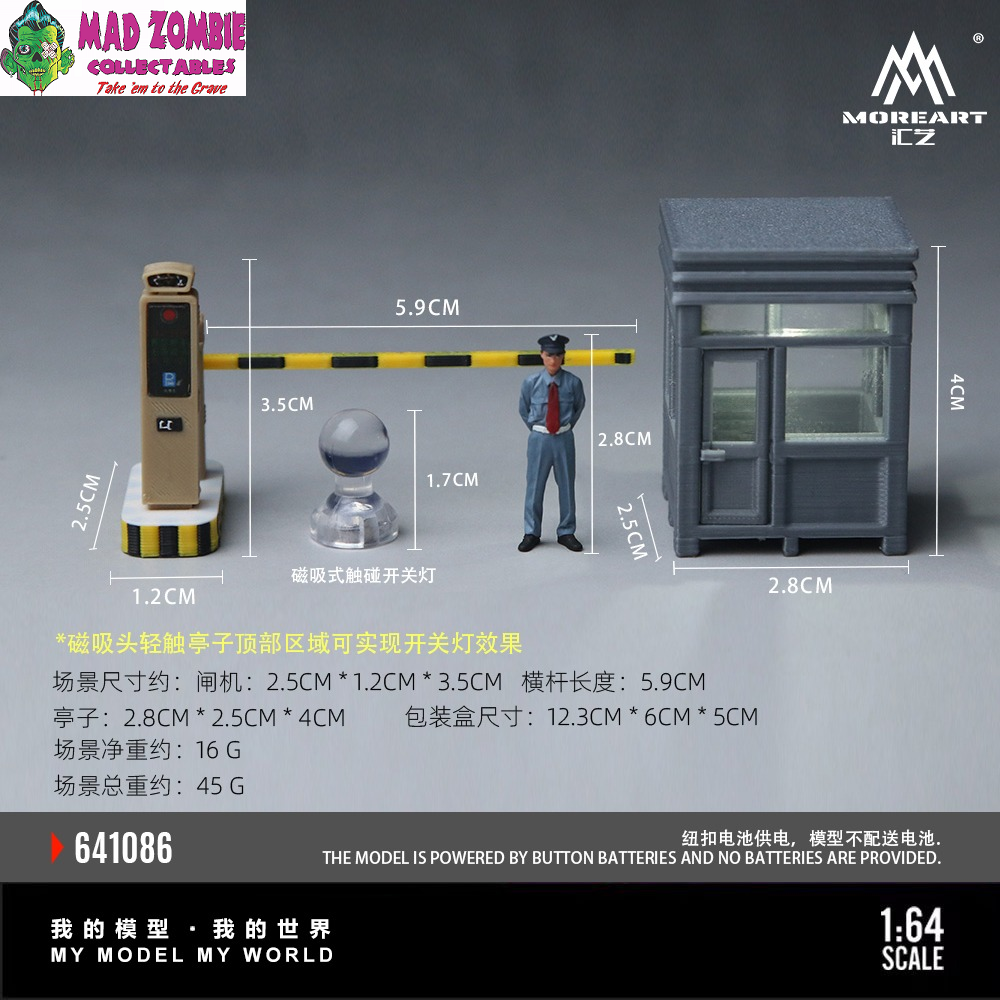 Bring your display to life with the MoreArt 1:64 Security Guard Set Resin Model (Lighted), a highly detailed figurine set designed to add realism, atmosphere and illumination to your diorama scenes.