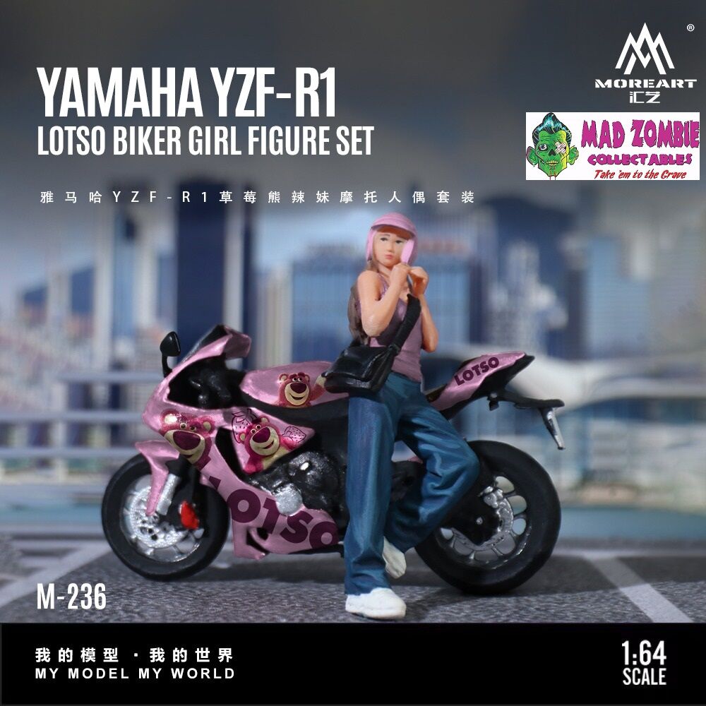 MoreArt 1/64 Scale - Yamaha YZF-R1 Strawberry Bear Cool Girl Motorcycle Figurine Set (Resin Model) - (PRE-ORDER)