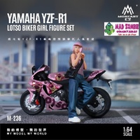 This detailed 1:64 scale set features a Yamaha YZF-R1 alongside a stylised “Cool Girl” figure and themed accessories, blending motorcycle culture with creative pop styling—perfect for collectors looking to build standout display scenes.