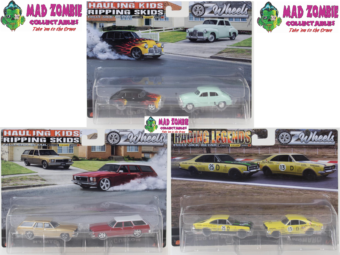 Oz Wheels - FSD Release 2 Twin Sets Hauling Kids & Ripping Skids - Racing Legends (2 Sets FACTORY SEALED CASE) (Possible Chase Supplied)