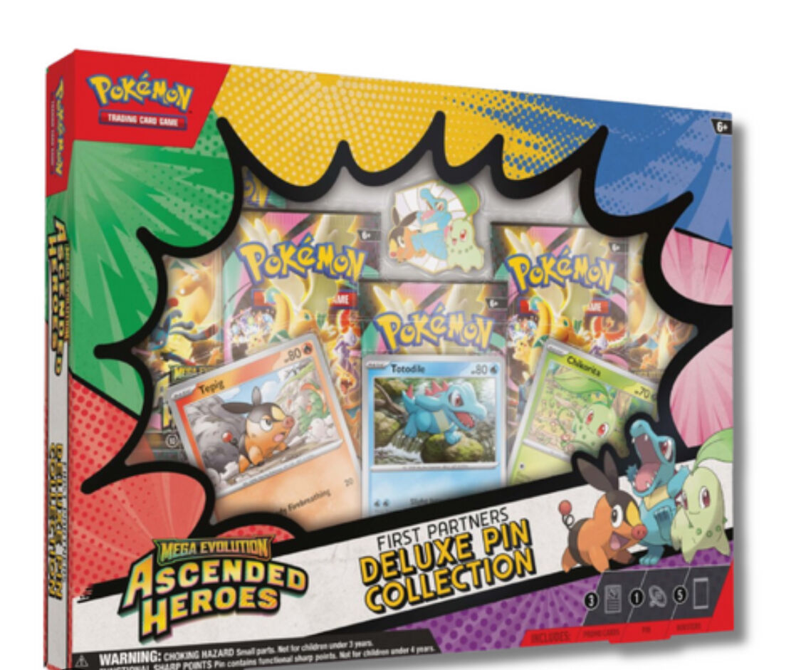The Pokémon TCG: Mega Evolution—Ascended Heroes First Partners Deluxe Pin Collection will be available on March 20, 2026, at the Pokémon Center and where Pokémon TCG products are sold.