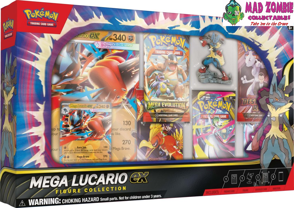 The Pokémon TCG: Mega Lucario ex Figure Collection includes: