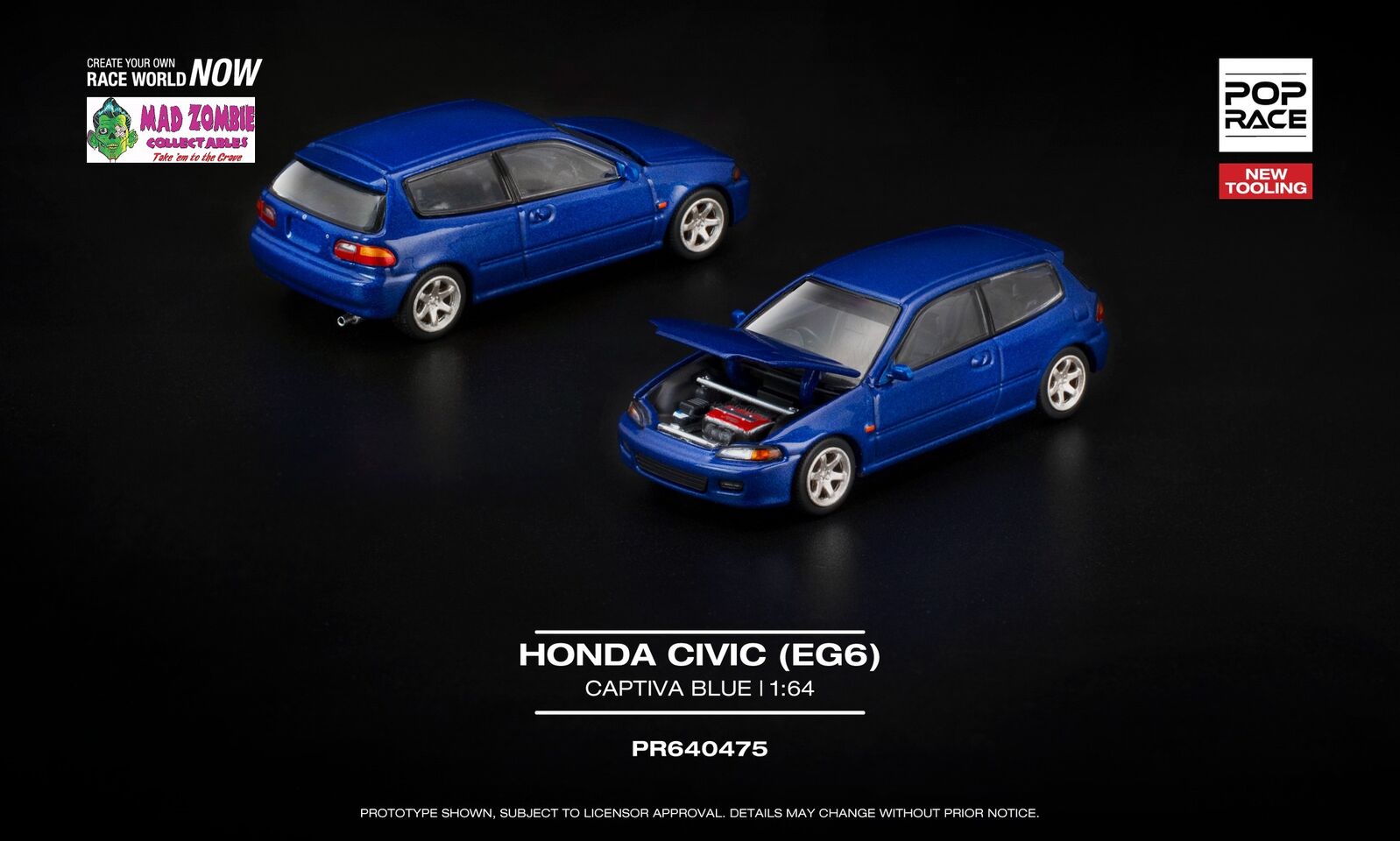 Pre-order - Released 30 May 2026Pop Race 1/64 - HONDA CIVIC (EG6) CAPTIVA BLUE NEW TOOLING
