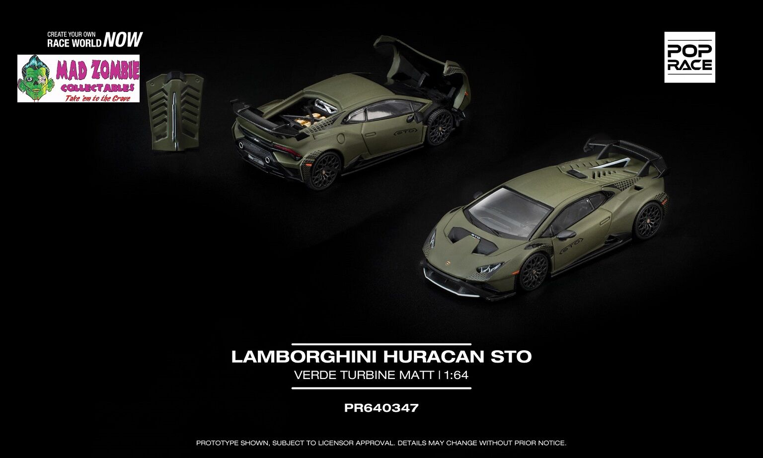 Pre-order - Released 30 May 2026Pop Race 1/64 - LAMBORGHINI HURACAN STO VERDE TURBINE MATT