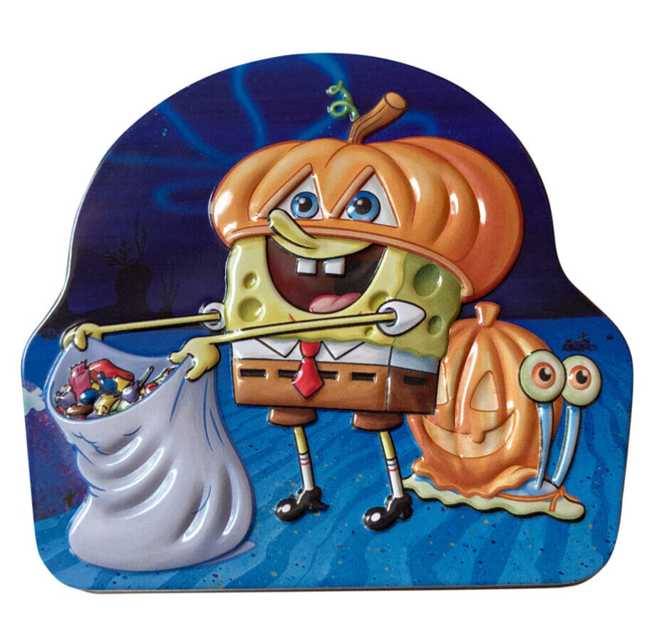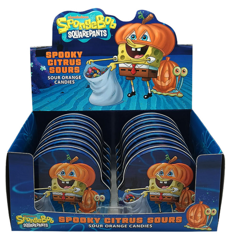 In StockSpongeBob has all treats, no tricks about this tin that's filled with 1.5 ounces of sour orange pumpkin candies.