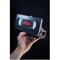 - Vintage Stranger Things VHS tape flips open into a detailed 3D classroom diorama