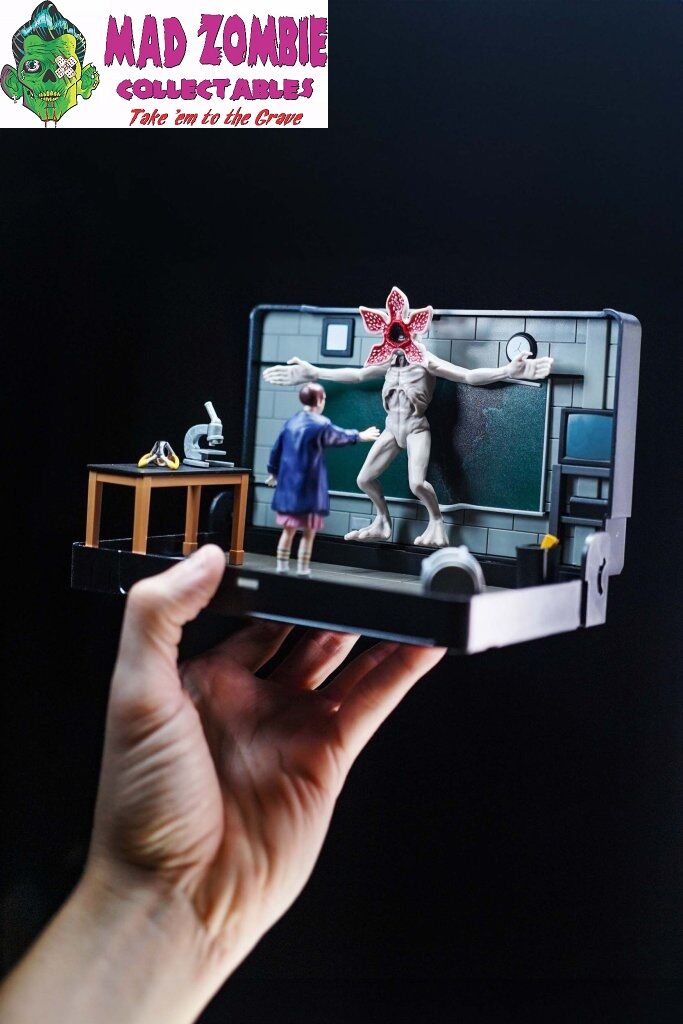 Featuring Eleven and the Demogorgon figures plus 5 scene-setting accessories—including a table, stool, microscope, slingshot, and trash can—this diorama is packed with molded elements and show-accurate detail. When you’re done displaying it open, the case closes back into a classic Stranger Things VHS tape for easy shelf display (note: figures and accessories are designed for external display and do not store inside). A must-have for fans of the series.