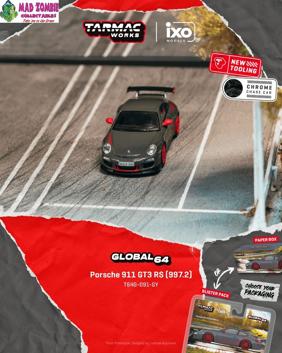 Tarmac Works Collab 64 & IXO - Porsche 911 GT3 RS (997.2) Grey (Possible Chase Supplied) - (PRE-ORDER)