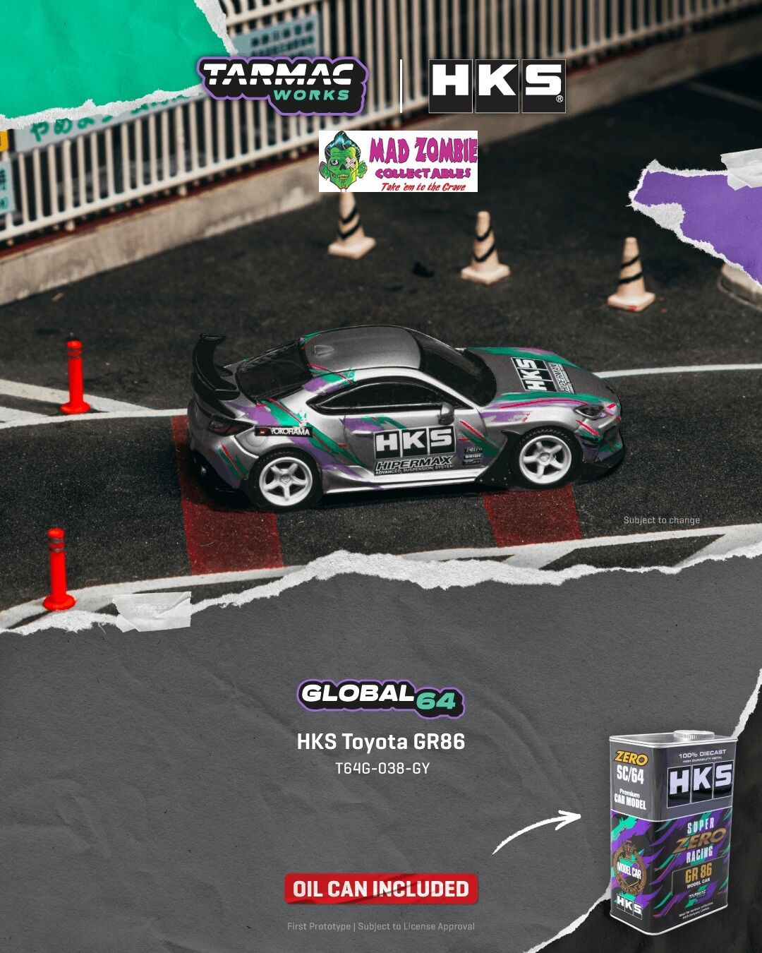 Tarmac Works Global 64 - HKS Toyota GR86 Grey (Oil Can Included) - (PRE-ORDER)