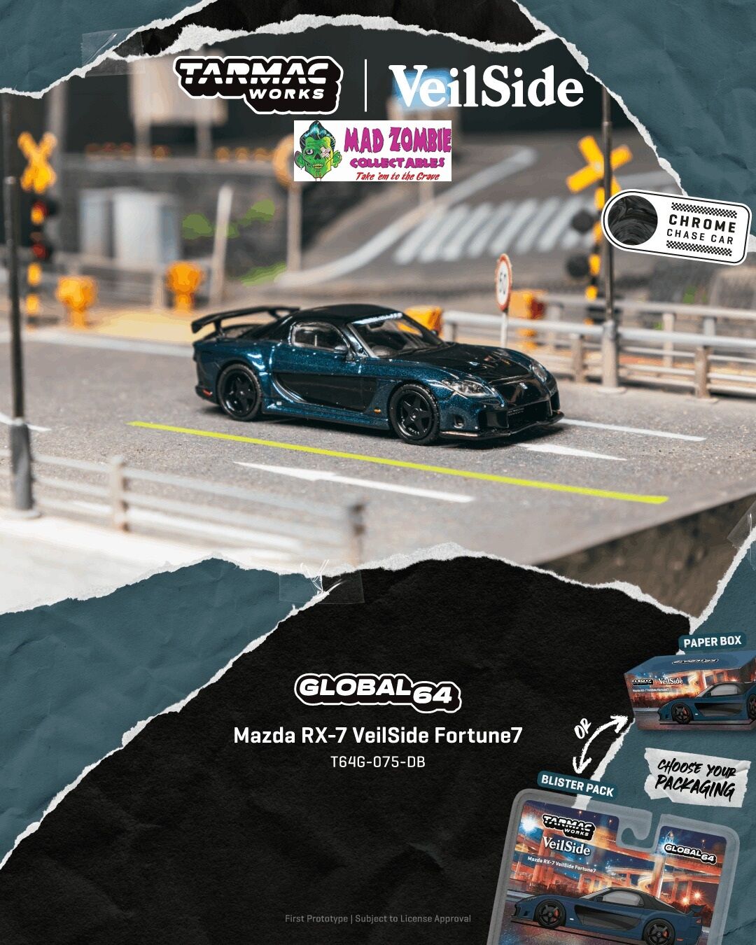 Tarmac Works Global 64 - Mazda RX-7 VeilSide Fortune7 Dark Blue / Black (Possible Chase Supplied) - (PRE-ORDER)