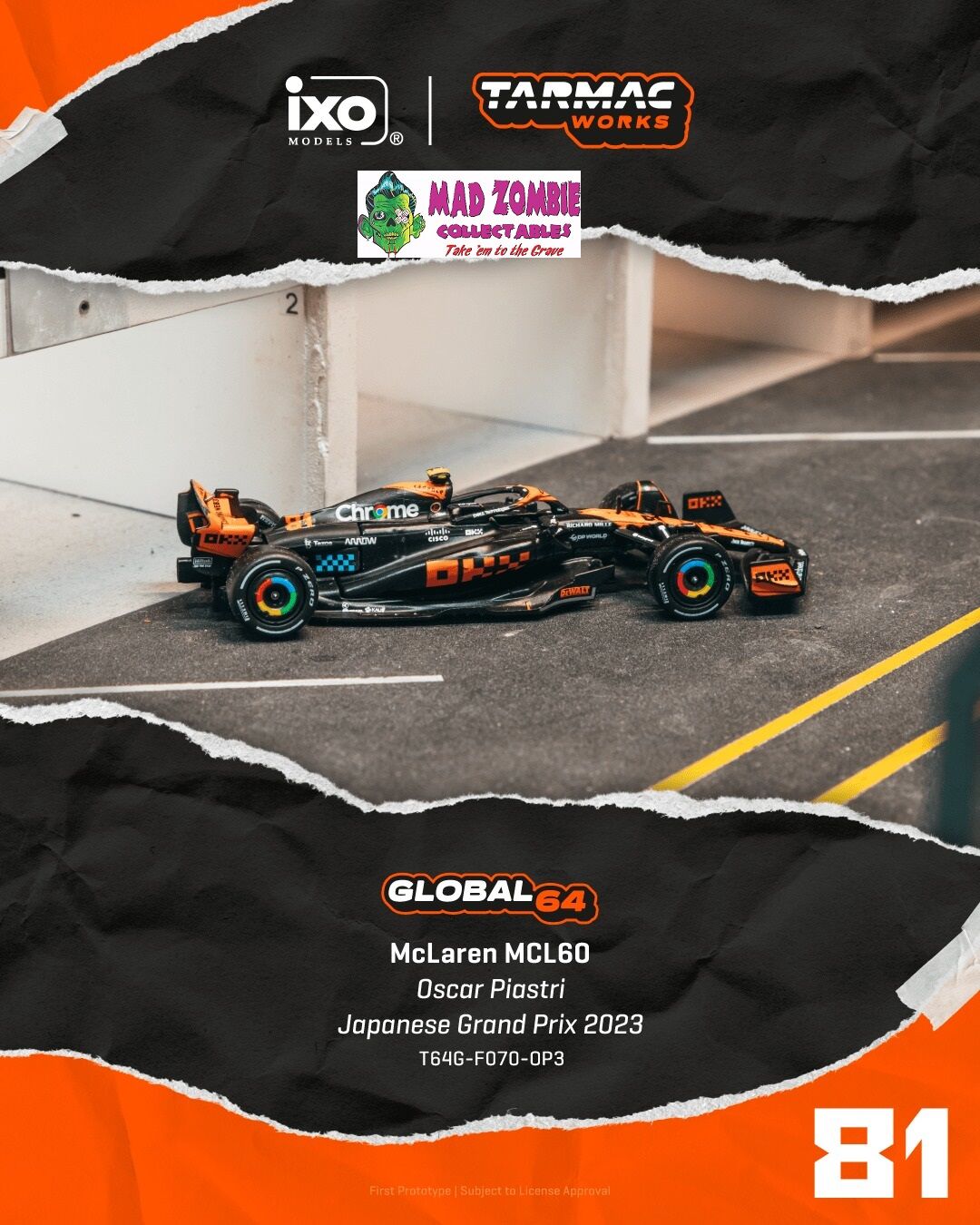 Tarmac Works Global 64 -McLaren MCL60 Japanese Grand Prix 2023 Oscar Piastri - (PRE-ORDER)