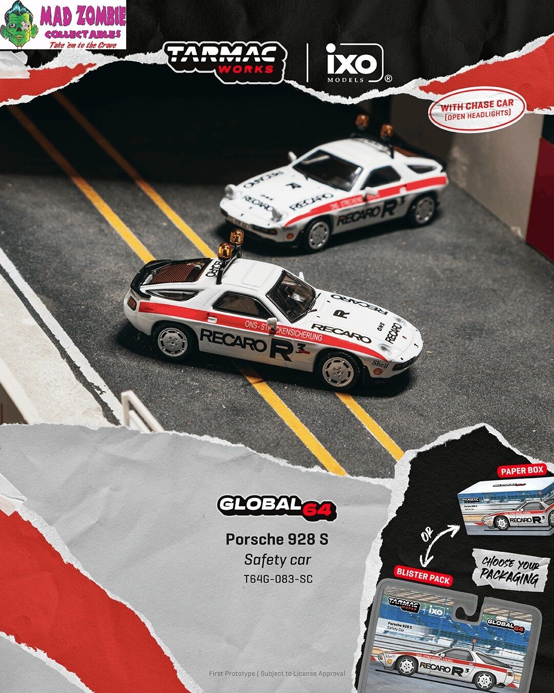 Tarmac Works Global 64 - Porsche 928 S Safety Car (Possible Chase Supplied) - (PRE-ORDER)