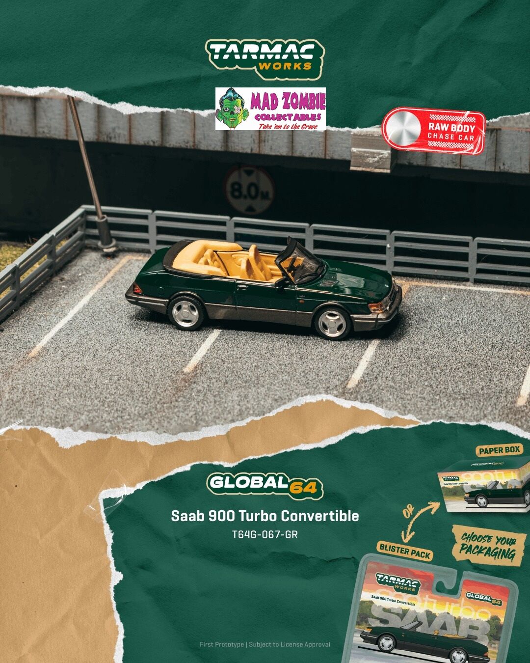 Tarmac Works Global 64 - Saab 900 Turbo Convertible Green (Possible Chase Supplied) - (PRE-ORDER)