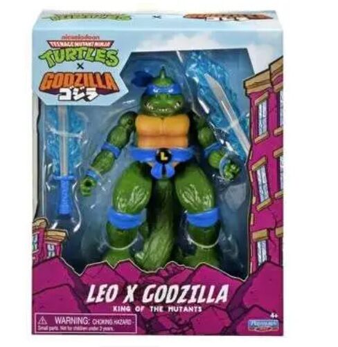 Pre-order - Released 5 December 2025The King of the Mutants has arrived. In this bold mashup of two legendary franchises, Leonardo mutates into Godzillareimagining the heroic Turtle leader with monstrous strength and reptilian power. Featuring scale-textured limbs, claws, and a powerful tail, this 6 articulated figure blends Godzillas fearsome energy with Leos ninja legacy. Equipped with two translucent, energy-infused katana swords, this figure is ready to take on any mutant threat. Packaged in a colorful collector-friendly window box with cracked building artwork and the iconic TMNT x Godzilla logo, this figure is a must-have for fans of both universes. Ages 4+.