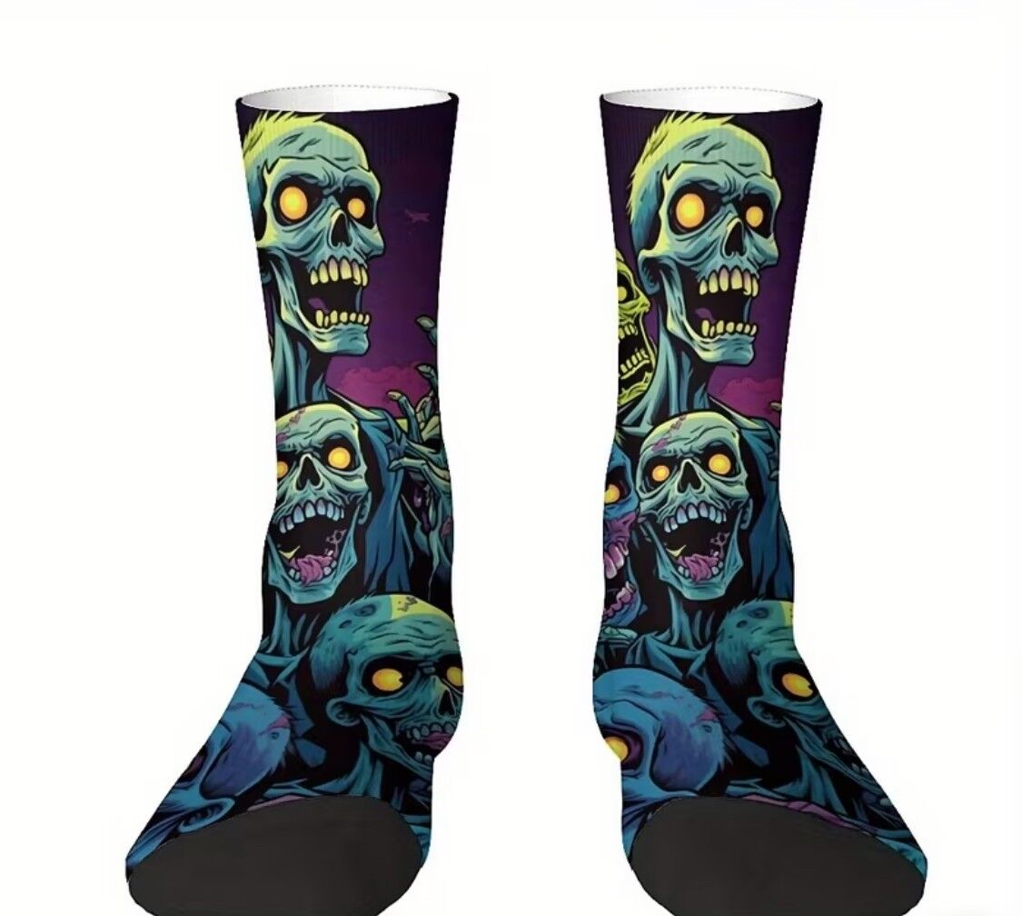 Zombies have remained a staple of horror culture for decades, appearing across films, games, and pop culture. These socks capture that eerie aesthetic with bold artwork that stands out while still being easy to wear day-to-day.